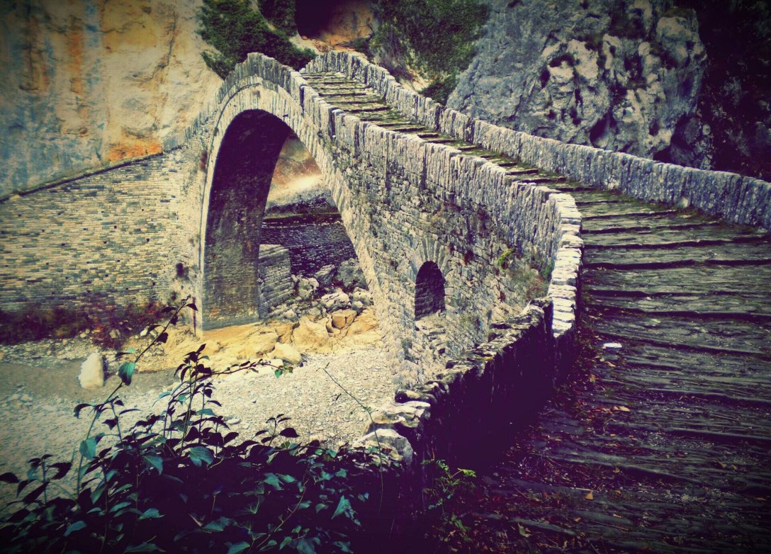 Στη φωτογραφία βλέπουμε το γεφύρι του Κοντοδήμου, ένα από τα πιο όμορφα ηπειρώτικα γεφύρια, κοντά στο χωριό Κήποι, στο κεντρικό Ζαγόρι, χτισμένο το 1753.